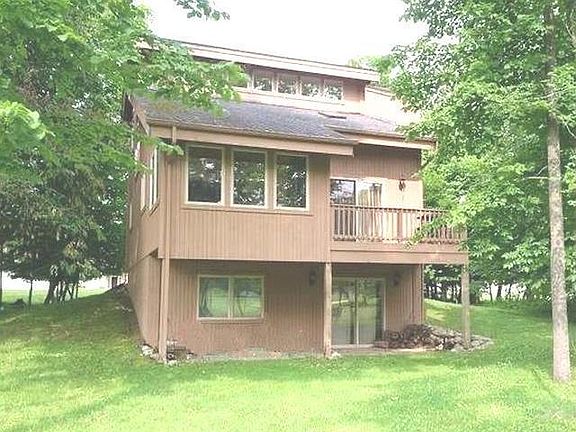 This delightful 3 bedroom, 3 bath home, is a bright and cheery contemporary style 2 story with a family room and walk-out lower level. Private Master suite on upper level and also and a 2nd master on lower level. Rich cherry cabinets in kitchen with plenty of drawers for storage. Cozy living room with built in gas log fireplace and doorwall to deck, perfect for morning coffee. Home includes forced air heat and A/C, plus vaulted ceiling and skylights. Adjacent to an 18-hole championship golf course and nice size lot for entertaining with an attached 2-car garage. Bed and Bath on each level perfect for family and guest privacy. Ownership provides access to 18 hole championship golf course , pro shop, restaurant/pub, indoor heated pool, exercise center, tennis/bocce ball courts, chalet/sledding hill, walking trails, activity bldg, access to 2 all sports lakes and 15 beach clubs.