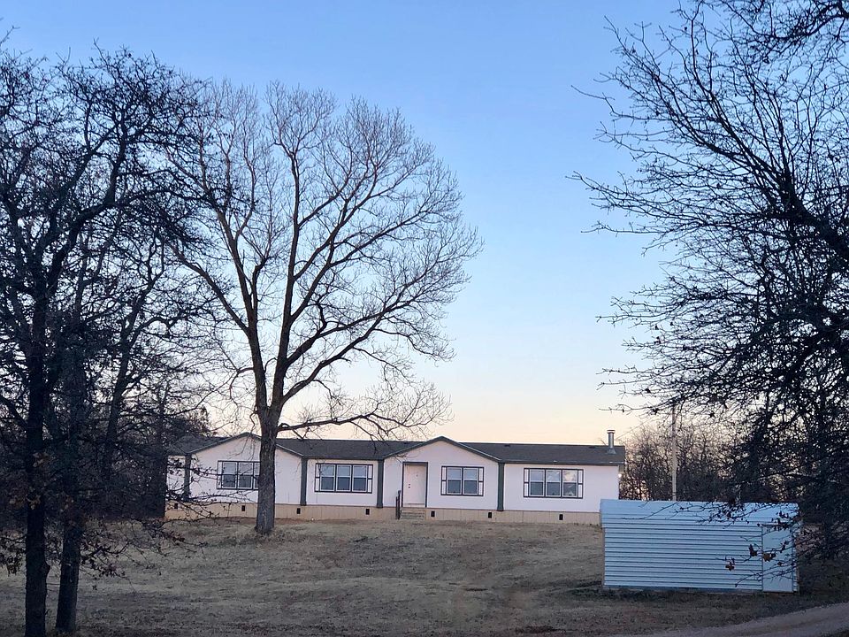 Quiet country living five minutes east of Tinker on an acreage conveniently located between I40 and I240. Manufactured home with 2,128 square feet located on 2.5 acres with 3 Bedrooms, 2 Full Baths, large Living, Dining & Family Room. Newly painted inside and out with beautiful new wood floors, tile, and carpet. Large master with walk-about closet and French doors opening to ensuite with garden tub, separate sinks/vanity areas and an abundance of cabinets. The two secondary bedrooms have new carpet and walk in closets. Bonus features include a large storage building and carport. Renter pays for electric and trash and responsible for mowing and upkeep of acreage. Renter pays for electric and trash and responsible for mowing and upkeep of acreage. Property is not fenced for pets. Due to COVID and high interest please review 3 D tour and if interested submit a Zillow application which includes credit and background check.