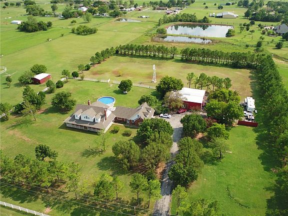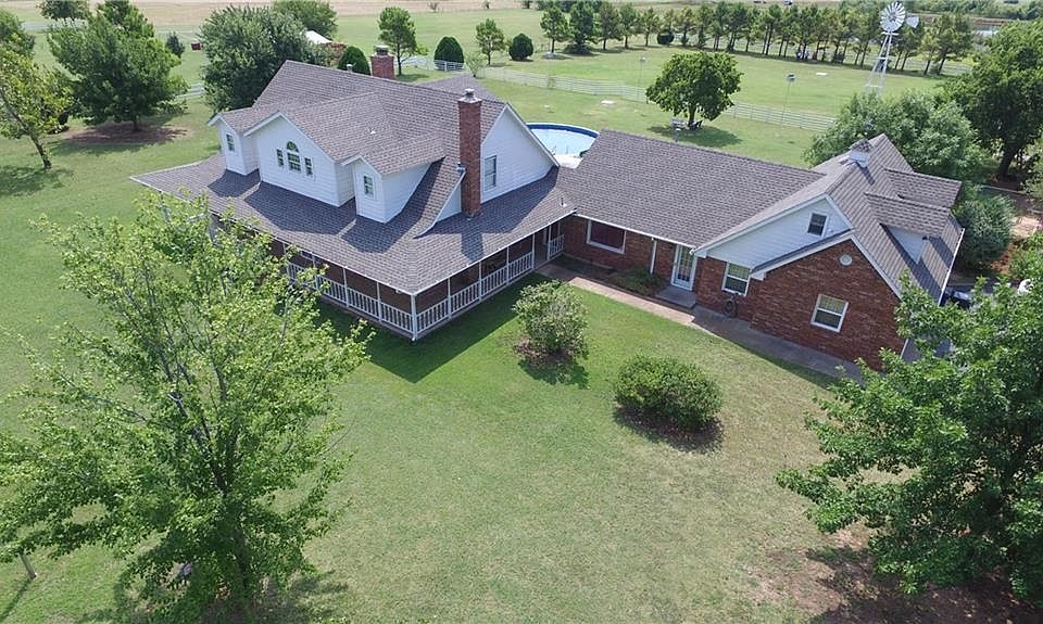 A diamond in the rough waiting for its new owners! This is a beautiful 5 acres with a windmill, barn and huge shop area! The property is fenced and ready for your horses! The beautiful landscape and huge pine trees will make you want to wander around your property for hours! Inside you will find a home full of character and charm, including beautiful built in bookcases, an oak staircase and beautiful oak flooring! This home also has a built in sauna, sunroom, exercise room and above ground safe room for those Oklahoma spring storms. It also has beautiful wood windows that add value and beauty to the home! You will save money on your water bill with the properties own water well for the outside watering of plants and livestock! This home needs some love and updating but truly could become a beautiful estate with some built-in equity to boot! Don't miss your opportunity to be close to everything but have your own paradise retreat to go home to every night! #Living the Life!