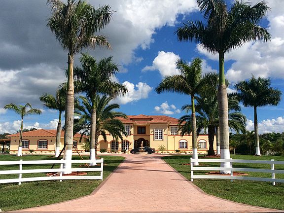 Southwest Ranches living at its best! This magnificent estate sits on 2.63 acres on 198th Terrace. Inviting foyer welcomes you into your new home offering a formal dining area off of the kitchen and a living room with a decorative fireplace. En suite bedroom off of the enormousfamily room and three steps up, an oversized kitchen with breakfast area. Spacious downstairs master suite with sitting area and a living room in the north wing. Upstairs large master suite with walk-in closets and a balcony and master bath with two sinks, tub and separate shower. The other three en suite bedrooms are also on the second floor and are big with walk-in closets.