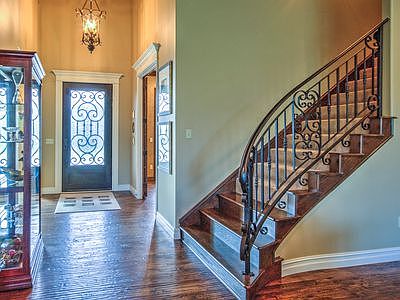- ConstructionMaterials: Stone, Stucco, Wood Frame