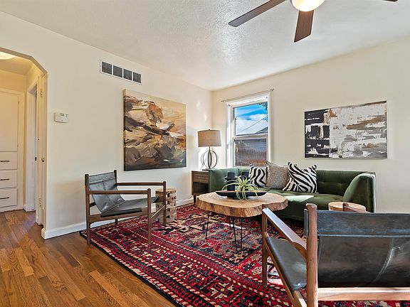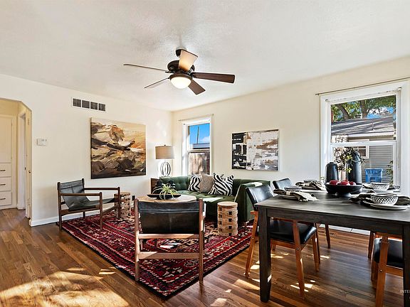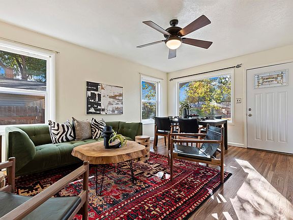 This house is a rare find in this price range! A cozy home with a small footprint that feels large because of the open floor plan and excellent natural light. The original oak hardwood floors were recently refinished to a beautiful luster. Upgrades to the kitchen include a dishwasher, a newer refrigerator and upgraded electrical, including additional electrical outlets. New light fixtures, ceiling fans, and built-in closets accentuate the 1950s charm throughout the home. The lot is large with plenty of privacy and includes two storage sheds, in-ground sprinklers, a decorative pond and a darn nice chicken coop in the fully fenced back yard. This property comes with irrigation water and a newer irrigation pump for outdoor watering! The home has a fully landscaped front yard in a quiet, established neighborhood. This home is in an excellent location, a ten-minute drive to shopping, the airport, or downtown. Twenty minutes to downtown by bicycle.