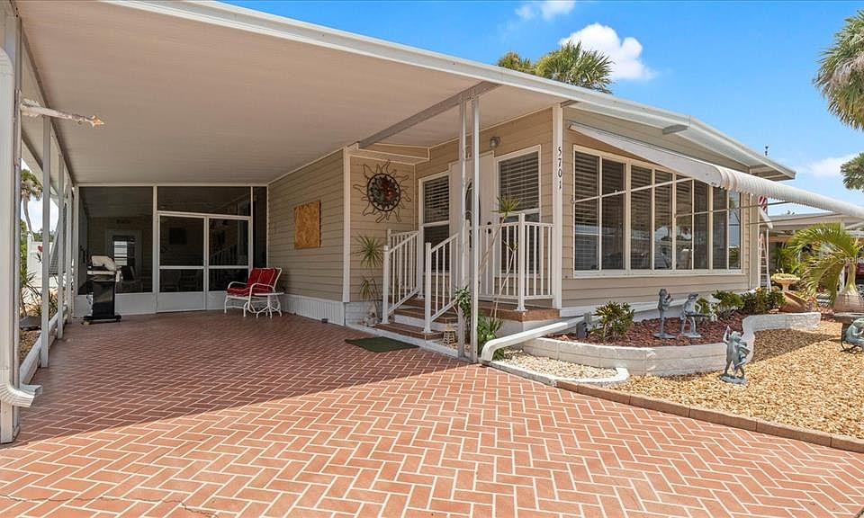 Stunning mobile home unlike any other! Located in the much sought after Japanese Gardens, a 55+ community just a short bike ride to Mannasota Beach. This upgraded gem features a state -of-the-art kitchen with all wood cabinets, dovetail drawers, rollout shelves and three pantries. Did I mention quartz counters and upgraded appliances? The floors have a ¾” plywood base covered with beautiful gray Pergo laminate. The guest bath has been remodeled with a generous tile shower, vanity with a vessel sink and extra large linen closet. The roof is an AMS metal pan and the HVAC was installed in 2019 so no worries there. The storage/workshop is air conditioned and there is a convenient outdoor shower. This home is located on an oversized lot and is artistically landscaped for beauty and ease of maintenance. The sunroom and oversized lanai add to your entertaining pleasure. The community features a large pool, pickleball, bocce, billiards, meeting rooms and lots of social opportunities. You will not want to miss out on this beautiful oasis! Call now for your private tour.
