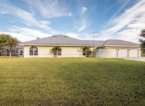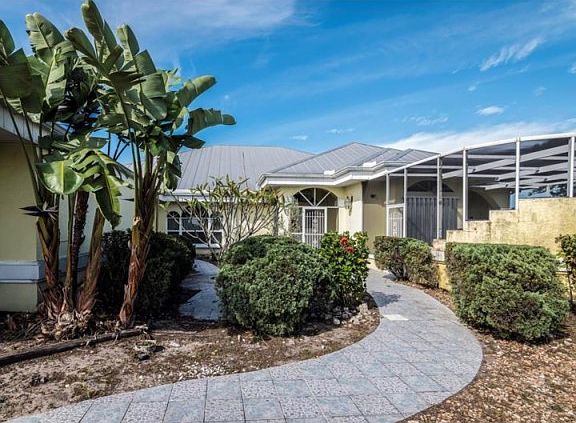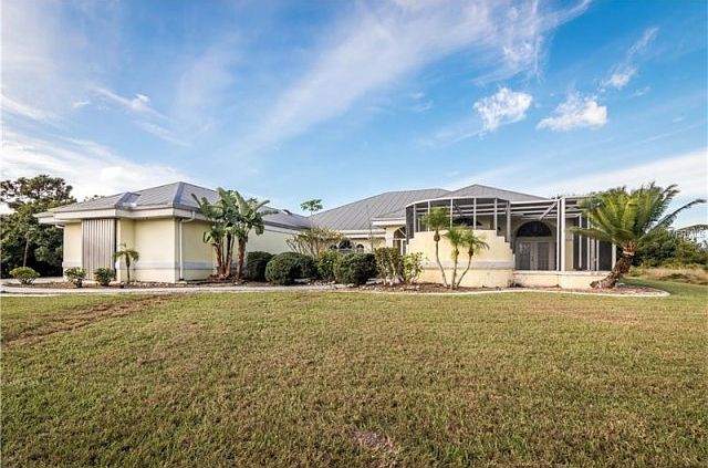 Located in the equestrian community of Prairie Creek West on 5 acres, this large home has a unique design and exclusive features. Two owners only. The home, as renovated, currently features 4 bedrooms, 3.5 bathrooms, a theater room for four, an executive home office/library, 2 patios, a 3-car garage and lots of room for entertaining. Some of the special features are: a theater room for 4, a fireplace, a 12' x 14' indoor water feature, marble floors, a wet bar, a butlers pantry, and 2 screened-in patio gardens, one with a grotto and a small pond. Country life with the convenience of being just minutes from I-75, shopping, dining and downtown Punta Gorda.