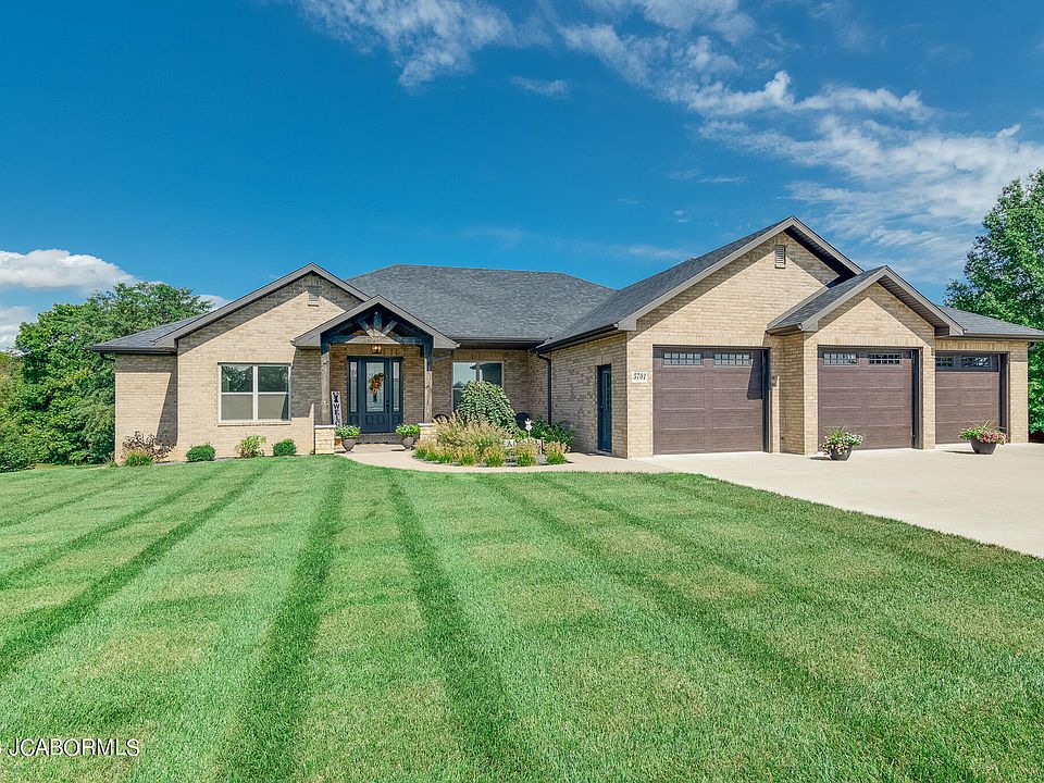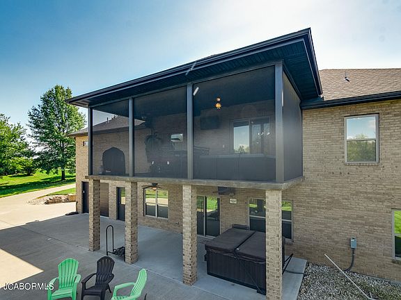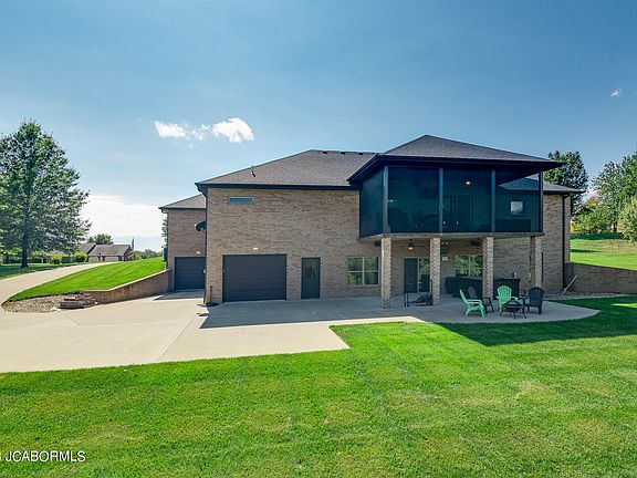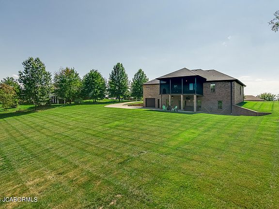 Located in a sought-after neighborhood in Blair Oaks school district, this 4 sides brick has it all from the excellent curb appeal to the luxurious amenities inside! Open the door to a spacious open layout and quality finishes. Designer ceilings frame the inviting living room creating an ideal space to greet your guests. Gorgeous granite countertops spread across the rich cabinetry & island of the entertainer's kitchen featuring a wonderful walk-in pantry that keeps your workspace clutter free. Indulge in your morning coffee on your deck with floor to ceiling screens as the morning sun warms the outdoor living space. The split-bedroom floor plan gives privacy to the master suite with coffered ceilings, double vanity, and a wonderful, oversized walk-in shower. Along with 4 bedrooms on the main level & a 5th downstairs, there's an additional office space for the at home executive. The sprawling family room downstairs awaits game night with friends with tons of space and a wet bar adding to the appeal. The expertly landscaped lawns invite you to gather around the fire pit or enjoy the views from the deck. With 3 garages on the main level plus 2 oversized garages downstairs, there is plenty of room for your oversized truck, boat and more. This meticulously maintained home is one you won't want to miss.