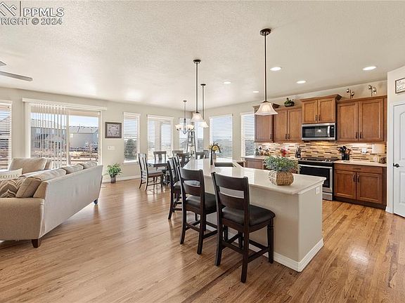Immaculately Maintained Ranch Style Home w/ Open Floor Plan & Pikes Peak Views! * Gourmet Kitchen w/ Maple Cabinets, Quartz Countertops, Stainless Steel Appliances & Pantry * Hickory Hardwood Floors Throughout Entry, Kitchen, Living Room, & Dining Room * Main Level Living Room w/ Gas Fireplace * Primary Suite w/ Attached Full Bath, Dual Vanity, Dual Shower Heads, & Walk-In Closet * 2nd Bedroom & Full Bathroom on Main Level * Expansive Basement Family Room w/ 9' Ceilings * Three Spacious Basement Bedrooms w/ Walk-In Closets * Basement Bath w/ Dual Vanity * Amazing Outdoor Space to Entertain w/ Covered Rear Patio, Meticulously Landscaped Yard w/ Views of Pikes Peak & Open Space * Covered Front Porch * Central A/C * Other Upgrades Include: Motorized Sunshade on Covered Patio, Maple Cabinets Throughout w/ Soft Close Hinges & Drawers, Upgraded Carpet & Pad Throughout, Quartz Countertops in Kitchen & Bathrooms