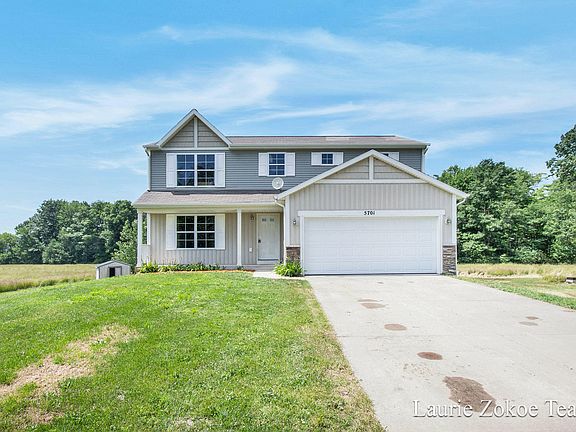 Gorgeous countryside views! This 4 bedroom 2.5 bathroom home is situation on 8.5 acres in Coopersville schools. Nestled on a quiet road but only minutes from highway access and town. Open floor plan with a spacious living room, dinning area and kitchen. Sliders lead out to a deck; perfect for entertaining! Convenient main floor half bath and entry area. Upstairs features 4 bedrooms including a large master suite, laundry, and a full bath. The downstairs walk out level has more room to expand living space and has plenty of storage. There is a full house water filtration system. Enjoy an abundance of wildlife! Make your appointment today!