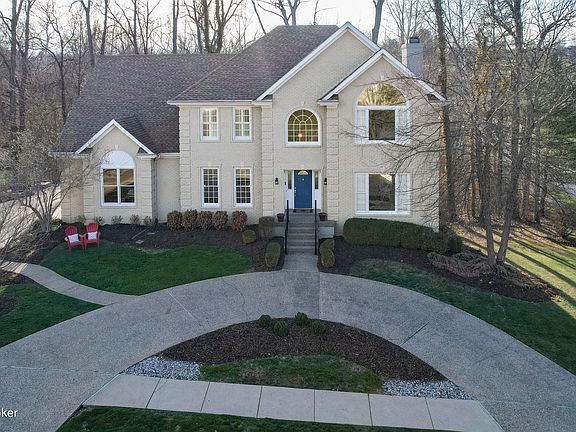 Painted brick 2 story walkout on a wooded fall away lot with a fantastic creek view at the rear of the lot. Choose your high elevation deck or the walkout level patio to relax or entertain outside. 3 car side loading garage. Well maintained and current updates include: Fresh paint inside and out including kitchen cabinets, granite, complete GE appliance package including a beverage center, New lighting in the baths, new plumbing fixtures (sans LL bath) and shower door in primary, ceiling fans and most lighting, exterior lights, cabinet hardware. Traditional plan with open kitchen family room concept. Sun room w/ vaulted ceiling on rear with access to Fam rm and kitchen. Large primary with cathedral ceiling and palladium window. (2nd floor laundry (thats where the bedrooms are) Another family room/ rec room in the lower level. Additional bed and full bath on this level (BR window exceeds the height off the floor to make code) Two HVAC systems for comfort and wise use of energy. Circle drive.
