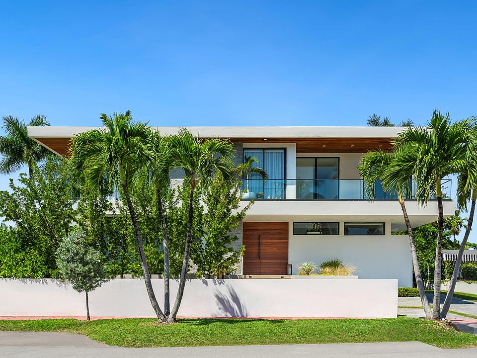 Step Inside With Me! Newly built modern masterpiece conceived by Jose Sanchez of acclaimed Praxis Architecture & Design. This 4 bed, 4.5 bath is perfectly positioned on upper North Bay Road featuring an idyllic open floor plan with impressive 11. Floor-to-ceiling glass provides sun-drenched natural light throughout the southwest corner location. Enjoy a true chefs kitchen with dual refrigerators, oversized cooking island, and walk-in pantry. Luxe features include 36" porcelain flooring plus custom millwork & wood louvers. The primary suite offers a sumptuous spa bath with steam shower, dual walk-in closets and expansive balcony overlooking the pool. Step out to your covered terrace featuring heated pool/spa and private yard appointed with mature 13 clusia hedges.