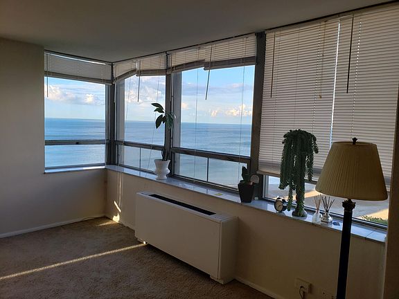 1 Bedroom/ 1 Bath on Lake Front. Beautiful views of Lake Michigan and Downtown Chicago. 24 hours doorman, video, key fob entry provides for a safe and secure building. Perfect location for family, childrens and parents for walk, jogging, biking, etc. Professionally managed building adjoining the beach and Lake. Short walking distance from Red Line trains at Bryn Mawr and Bus routes 147 and 151 are just across the street. Next to Bike path and Hollywood beach. Includes all utilites (heating, cooling, water, sewage, internet, cable) Renter only pays for electricity.