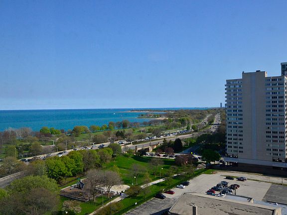 View our virtual 3D tour! Welcome home to this rarely available 17th floor, SW CORNER condo w/ postcard perfect, unobstructed EAST, SOUTH & WEST VIEWS of the lake, beach, park, LSD & city! Situated in the highly regarded, full amenity Hollywood Towers at Edgewater Beach, this open & airy 950 sq ft condo (largest 1 bed layout in bldg) boasts wall-to-wall south & west facing windows that adorn the spacious liv room, light-filled din room & lrg bedroom! Unit is in IMPECCABLE, original condition to move right in or update if you wish! LOW ASSESSMENT of $492 inc Heat, A/C, Internet, Cable. Onsite amenities inc POOL, exercise room, commissary, elevator, laundry, dry cleaning & indoor heated valet prkg ($170/month). Extra storage, too! DIRECT ACCESS to the BEACH/BIKE PATH. Express bus right outside Steps to Red Line. Walk to Mariano's, Whole Foods, shops, dining, theater, Loyola Univ, Bryn Mawr historic district & all Andersonville/Edgewater has to offer. No rental restrictions! No dogs