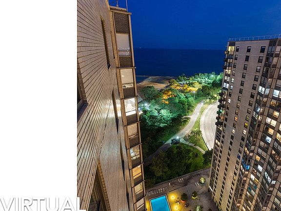 Outstanding 30th Floor Penthouse Corner Unit with Balcony and UNBELIEVABLE uninterrupted 30-mile horizon city and lake views! This spectacular 2 bed, 2 bath unit features a spacious, open living/dining area with gorgeous laminate Pewter Oak stain-resistant flooring perfect for beach-living and custom original one-of-a-kind solar blinds which absorb 90% of heat and 98% of UV which allow see-through visibility when drawn closed. New granite windowsills, custom metallic-painted wall a/c units, Bioshield wall paint and 5-FOOT-TALL WALL-TO-WALL WINDOWS with the most incredible views of the lake and city. The kitchen features black marble flooring, crisp white cabinetry with birdcage hardware, 2 tiers of dimmable lighting, tons of storage (including a Lazy Susan) and all newer high-end KitchenAid appliances. White Carrera marble flooring, slate floor-tiled closets with Pine doors and lighted wall panel switches adorn the hallway. Both bedrooms are good sized with solid Pine doors and include custom light-filtering cordless cellular shades, brand-new plush carpeting and huge closets with mirrored/frosted doors. The master bedroom offers a private en-suite with a granite counter vanity and shower/tub combo. Both master and guest bathroom have mirrored doors and walls, marble floors/lower walls and include great storage space. Hollywood Towers is a 24-hour doorman, full-service luxury high rise that offers resort-style living at its best and is located on Lake Shore Drive on the Chicago Lakefront Trail approximately 100 yards from the beach. The outside second floor sundeck features a 10 ft. deep pool with attendant and changing cabanas.. The inside second floor contains the laundry room, fitness center (featuring treadmills and universal workout equipment) and a storage room with an INCLUDED 34x60 secured storage cage. There is a convenience store, dry-cleaning services, a hair/nail salon and bicycle storage all located on the first floor. Indoor heated valet parking is $170/month. CTA Express bus at door. 2 blocks to Red Line. Kathy Osterman Beach with Lakefront Café at back door. Just SECONDS to major retailers of all kinds, Walgreens, tons of casual and fine eateries, theaters and ballrooms, Loyola University, EVERYTHING!!! Units like this one RARELY go on the market! Xfinity digital cable TV and high speed internet, A/C , water and gas all bundled with monthly assessment. $550.25 monthly HOA includes special assessment for garage improvements. Animals allowed under certain conditions. Schedule a showing with REX today.