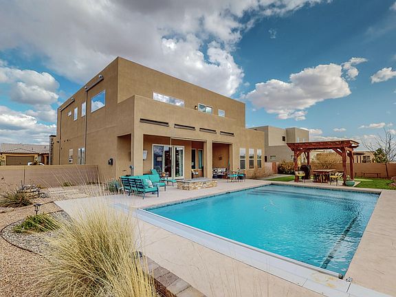 DON'T MISS THIS HOME!! 4 YEAR OLD CUSTOM IN GROUND GUNITE POOL! SUBSTANTIAL SOLAR SYSTEM!! Bright Open Floor Plan with Soaring Living Room Ceilings. Huge Island highlights the Chef's kitchen. Large Master Bedroom features balcony with open space views. Come see the TWO big Master Bedroom Walk In Closets! Over-sized loft overlooks the Main Living Area. Full Sized Laundry Room provides ample space with lot of cabinets and a folding counter! All of this in the Gorgeous Mariposa Community! Mariposa has a Community Center with Full Gym, Indoor Pool and Outdoor Pool. Miles of paved walking trails. Adjacent to an approximately 2200 Acre open space preserve. On site Lifestyle coordinator. Mariposa is more than just a place to live. It's New Mexico's Premier Luxury Resort Style Community!