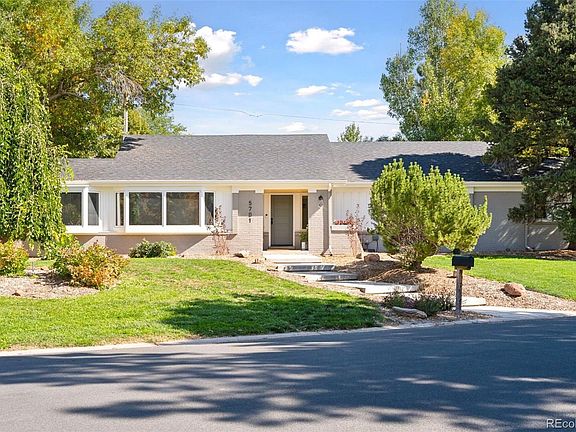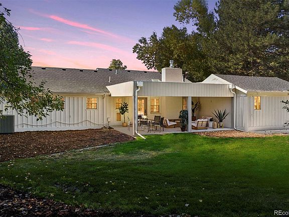 Welcome to 5701 S Happy Canyon Drive, a stunningly remodeled ranch-style home located in the highly sought-after Cherry Hills Village neighborhood. Nestled on a lush corner lot, this property combines modern amenities w/ timeless charm, offering the perfect setting for comfortable living & elegant entertaining. As you step inside, you're greeted by an open-concept living space bathed in natural light from large windows & vaulted ceilings. The entryway opens into a bright living room, enhanced by a skylight & centered around a gorgeous porcelain fireplace—perfect for both relaxation & entertaining. The living area seamlessly transitions into the dining room & gourmet kitchen, which features rich wood cabinetry, sleek counters/backsplash, high-end stainless steel appliances, & a spacious quartz kitchen island, ideal for meal prep & entertaining. Culinary enthusiasts will delight in the microwave/oven combo, gas range & hood, beverage fridge, pantry, & ample cabinet space. Adjacent to the dining room is a second main floor living area, providing an effortless flow between the kitchen & living spaces. Down the hall, you'll find a full bath w/ double vanities, along w/ three spacious bedrooms. The primary suite is a true retreat, filled w/ natural light & featuring a luxurious 3/4 bath w/ double sinks, a dedicated vanity area, a large walk-in shower & a custom dream walk-in closet. A convenient laundry room w/ stackable washer/dryer & built-in shelving/racks completes the main floor. Head downstairs to the spacious basement, a versatile space that can serve as a family room, media room, play area, workout zone, or whatever your heart desires. This level also includes a 3/4 bath & a large conforming bedroom, providing plenty of additional living space. Step outside to discover a fully fenced backyard that’s perfect for outdoor entertaining. Gather around the fire pit on the covered patio, & enjoy the newly seeded & mulched lawn—creating your own private outdoor oasis.