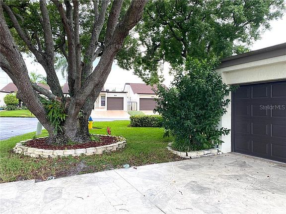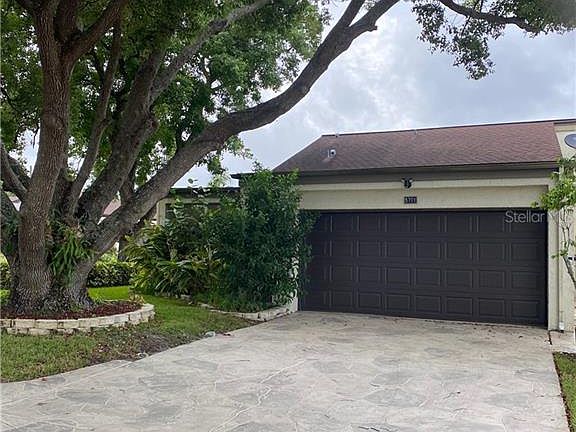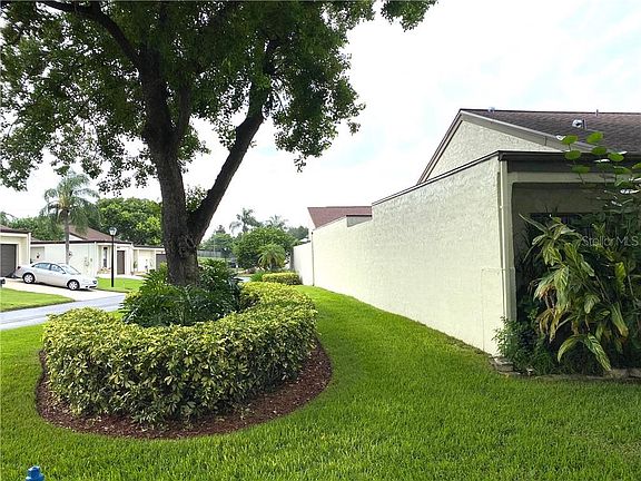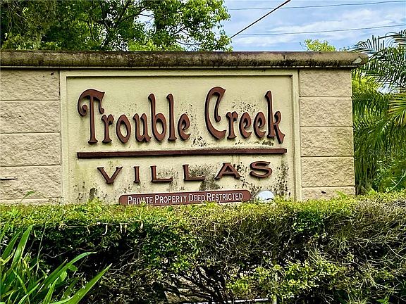 Super spacious end unit, private fenced entry, private enclosed lanai in beautiful Trouble Creek Villas in New Port Richey, Beautiful 2/2/2 unit with many extras: large living room/dining room/great room combination with sliding doors to enclosed atrium patio. Light and bright with skylight. Dining room is just off the kitchen, split floor plan, tile, carpet in bedrooms. 3 extra closets in home for storage. Room sizes are approximate. Guest bath has a new fabulous Safe Step tub and shower, walk in shower in master. New slate driveway plus 2 car oversized garage with lots of storage. Seller left 2 Ring doorbells with cameras for the new owner. Roof and AC 8 years old (2012) This subdivision has only 58 units and low $75 mo maintenance fee. Community pool, quiet and peaceful neighborhood to make this your new home! Maintenance fee covers common elements, street lighting and community pool.