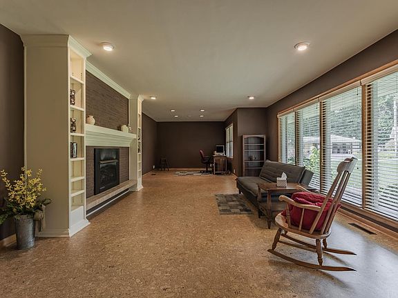 Check out this beautiful and spacious mid-century modern all brick ranch with finished walk-out basement on a .48 acre lot with gorgeous lake view! You will love all the space this home has to offer with huge rooms, 4 Bedrooms, 3.5 Baths, 2 Living Rooms, 2 Family Rooms, workshop , and storage galore. A wall of windows provides tons of light for the Living Room with gas fireplace with impressive hearth, and built-in shelving. At the end is a space ideal for a Dining Room or Sitting Area. The Eat-In Kitchen accommodates a large table, and has an unbelievable amount of granite countertops and cabinets. The main floor has hardwood and cork flooring throughout. The Master Suite has a private Full Bath and 3 closets. There are 2 more BRs and Full Bath on the main floor, and a convenient 1/2 bath between the kitchen and garage. In the Walkout Lower Level is a 2nd Family Room with gas fireplace, another Living Room, Bedroom, Full Bath, and huge Utility/Storage Area with Laundry, and workshop under the garage. The Lower Level is ideal for an in-law suite with the configuration! There is a laundry closet on the main floor if you would prefer a main floor laundry. Seller is providing a 2-10 Home Buyer Warranty for peace of mind. You will love the lake view from the deck and entire back of the home, yet have none of the lake maintenance and responsibility. Incl: Ref, R/O, MW, DW, W&D, Freezer and bsmt fridge, 2 dehumidifiers, workbench and desk in shop, all WT, shed.