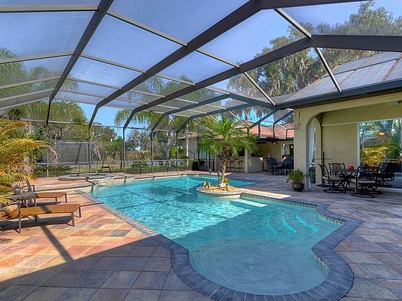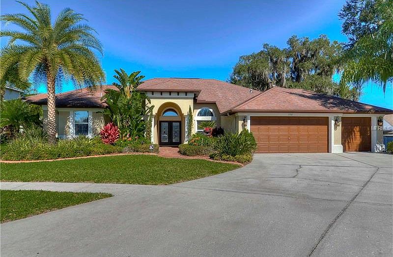Stunning 4 bedroom, 3 bathroom home sitting on over ½ acre lot with additions and upgrades galore! Located in the small enclave of Parkside Village with only 40 homes, no CDD (almost unheard of in the FishHawk Ranch boundary) & short walk to the 'A' rated Bevis elementary! Exquisite details begin from the moment you arrive, with lush landscaping, pavered entryway & leaded and beveled glass front doors. Step inside & find crown molding & plantation shutters throughout the entire home! No expense has been spared! Separate formal living and dining rooms are great for entertaining, and the dining room features a pass-through bar to the kitchen! The remodeled kitchen offers beautiful custom cabinets with crown, granite countertops, stainless appliances, including 6-burner WOLF stove & so much more! The family room is open to the kitchen with sliders leading to the lanai and a breakfast nook that boasts lanai and pool views. The homeowners have done a fabulous job modifying the original floor plan to extend the large bonus room and add a media room with raised flooring for theater seating! The private master suite also leads out to the lanai and offers another addition featuring a 16x16 master closet with custom shelving, laundry room, and a craft room that could even become a nursery! This home has an abundance of room for storage! Outside is an oasis! Extended lanai with sparkling swimming pool & spa, fireplace, outdoor cabana with kitchen, fully fenced yard & incredible conservation views from every angle!