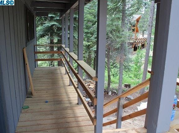 Some remodeling recently with all new carpeting,decks,stairs,& re-leveled plus some electrical work on the lowest level. This home has the lower level with fireplace, full bath, laundry/storage room & office or possible 4th bedroom. The main level is open living/dining/kithen with vaulted beamed knotty pine ceilings. Full bath and 2 more bedrooms. The uppermost level is a loft, bedroom & a 3/4 bath. Floor to ceiling windows and sliding doors onto the decks. All flat lot. Adjacent 1/3 acre also for sale.