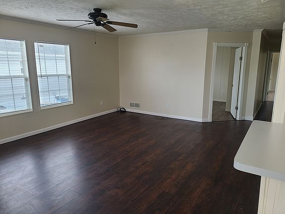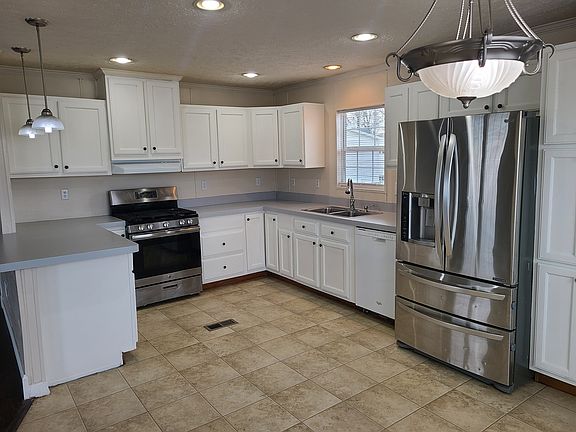 3 bed/2 bath home with covered front porch, private driveway, and shed for outside storage. Stove, fridge and full-sized washer and dryer are included.