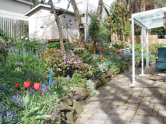 Available December 15 of 2014, here is an opportunity to own a super house in W Linn, Oregon, where Estately's web site says, "Already on CNN Money's best places to live, W Linn has the lowest crime rate on the list, its public education is ranked second and its housing is the ninth most affordable." What a recommendation! Ranch style house built in 1990, quality throughout, purported 1687 sq. foot but has loft storage and many built ins with work bench in the double tall garage. House sits on 1.5 lot (house to right has other 1.5 lot) and then also another zone in the rear of the property. There is amazing landscaping of perennial plants, a huge front deck built 3 years ago, a glass covered back porch and paver patio, two out buildings one of which is insulated and is 12'x10' and the other 8'x6', tremendous walkability as close to grade school and high school, grocery shopping, restaurants, library, post office, bus routes and several parks, one with a water feature for the kids. The roof is 8 years new, there are vaulted ceilings when not otherwise 10' walls, a skylight in the foyer, two solatubes in family room, and has fresh interior and exterior paint 4 years or less new. It has true oak hardwood floors in half the house and plush wool carpet in the bedroom half. Ceiling fans are in all bedrooms and also the family room and a gas fireplace in the family room on independent control from forced air heat. Solid core wood doors throughout, double attached garage, another outbuilding along right side of the garaage, has fencing on right side and behind, with paver patio in back which slopes away with great drainage and no wet crawl space. House has attic storage and lights as well as storage under front of house where one may actually stand, with a work bench and canning shelves and electricity there also. There is also attic storage! There is easy access to every part of this house which has had only two older (mature) adult owners and has been perfectly maintained in this fantastic neighborhood with respectful families and children with most houses owner occupied. Lots more to say - too much to mention here. Call for an appointment. FSBO. Also 3.5% assumable! 503 557 7590 $356K