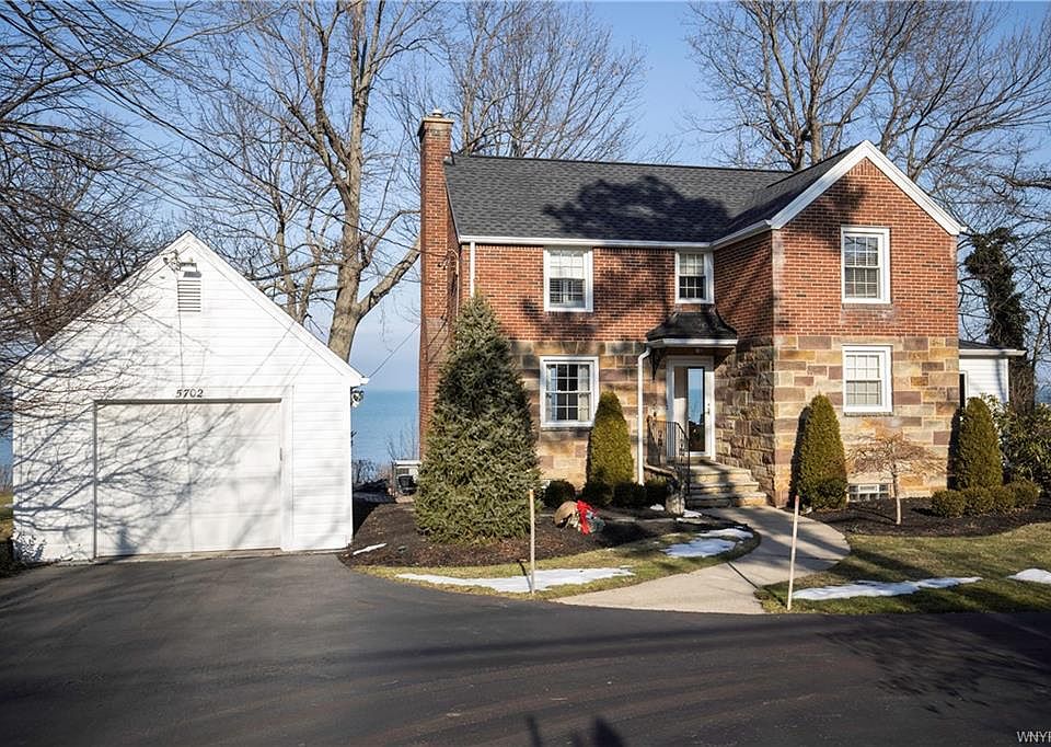 When you pull into the circular driveway through the majestic gates of this property to take in the spectacular view of Lake Erie and sandy beach, you know you are home. Brick and stone residence sits perfectly on the treed lot. Bright, cozy LR with WBFP , overlooking of Lake Erie. Formal DR with the same view and leads to the large eat-in fully applianced kitchen with wood cabinetry and loads of storage. Sliding glass doors open to patio facing the water. 2nd floor bedrooms all have HWF. Large master with wall of closets and beautiful view. 2 other bedrooms, one could be home office space. Solid mechanicals include tear off roof, A/C, FHA furnace, hot water tank and circuit breakers. 1 car garage with loads of storage. The setting and condition of this house are one of a kind.