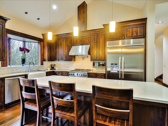 - Appliances: Dishwasher, Refrigerator, Convection Oven, Wine Cooler, Built-In Range, Pantry, Gas Appliances, Quartz, Cook Island