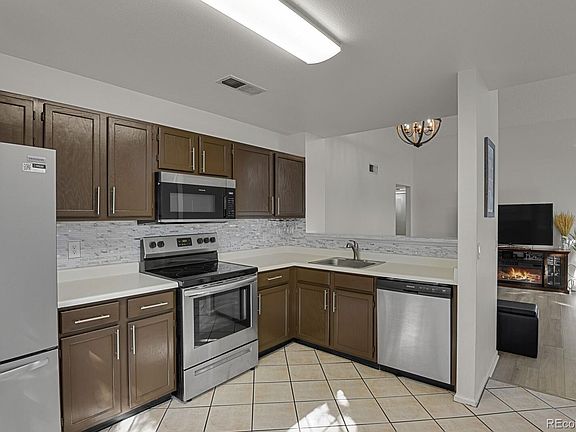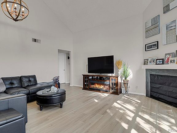 Welcome to this charming top-floor corner condo, featuring 2 bedrooms and 2 bathrooms. The vaulted ceilings and the arched window in the living room offer plenty of natural light. Open kitchen offers plenty of counter space and storage. This unit has plenty of upgrades: new appliances, furnace, newer water heater, and a brand-new roof. The bedrooms have fresh carpet, while the living area features laminate floors. One of the bathrooms has been tastefully updated. Each bedroom has its own balcony with additional storage, perfect for enjoying your morning coffee or evening relaxation. You’ll have a designated parking spot and a 1-car garage for your convenience. Located just minutes away from shopping, parks, trails, and the Harvey Park Rec Center, this condo provides easy access to a variety of activities. The community offers an outdoor pool, a clubhouse, tennis courts, picnic and grilling areas. With the garden-level first floor, the condo feels like it is situated on second story. This condo is a perfect blend of comfort, convenience, and modern living.