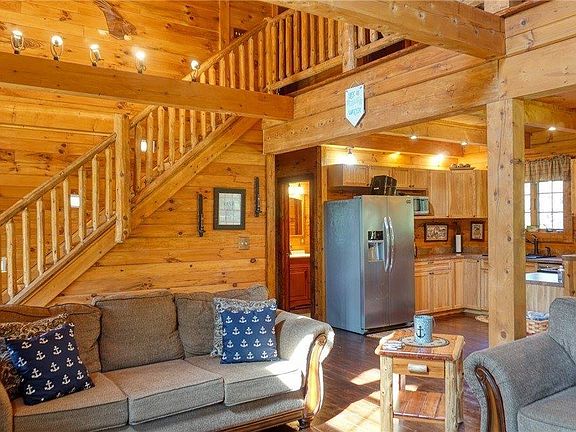 Stunning Log Home with Seneca Lake views on private property - water access directly across the street! Fully furnished is an option! Boat slip and East End Boat Club membership! Step inside the open concept home and enjoy the two-story stone wood-burning fireplace, large living room, kitchen, dining area, and sunroom. That's not all the first floor has to offer, it also has a conveniently located 1/2 bathroom with washer/dryer and a spacious master suite. The master bathroom has a double vanity and dual-head walk-in shower and a walk-in closet. Upstairs, there is a large loft (potential 5th bedroom), two additional bedrooms, and a full bathroom. In the fully-finished walk out basement, there is yet another bedroom, over-sized bathroom, and massive recreational room. New ceramic tile and drywall throughout the entire basement! New roof in 2018. Back deck is reinforced & ready for a hot tub. Must see inside! East End Boat Club annual fees $100 (paid for 2022) and owner is responsible for watershed boat stickers. Call now to set up your private tour! This home is equipped for year-round or seasonal living!