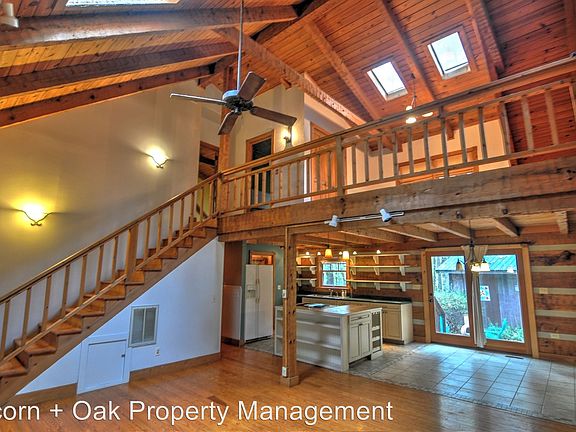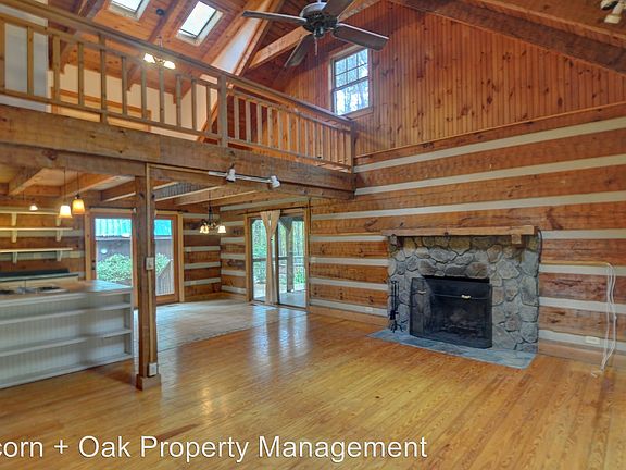 Cozy Efland Log Cabin to Call Home - If a wooded wonderland retreat sounds perfect to you, look no further than this 2 bed/2 bath home! Just 20 minutes from Carrboro, but a world away, enjoy the peace 4 acres of land can provide. The main living space is an open kitchen/dining/living room with a stone fireplace and gorgeous tile and hardwood floors. The exposed-beam walls and vaulted ceiling lead up to an open, flexible loft area that would be perfect for a home office. Upstairs, find one large bedroom with cedar closet and full bath that has a claw-foot, cast-iron bath tub. Downstairs is a cozy bedroom painted blue, a great compliment to the wood. The master features a jacuzzi tub, separate shower and bidet. This place has charm to spare and the bonus converted garage/heated work space and outdoor storage shed would be wonderful for a craftsman or tinkerer. Washer and dryer are included. Fenced-in yard. Pets are okay with approval and appropriate deposits. Occupancy limit: 4 Offered for lease by Acorn + Oak Property Management. Minimum 650 and above credit score required. No Students. (RLNE5295633)