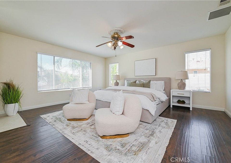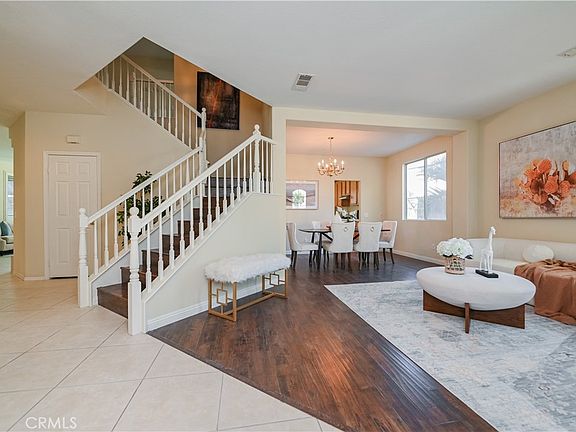 This stunning home is located in Eastvale and offers five bedrooms, four full bathrooms, and a spacious primary suite with a double-sided fireplace and a large retreat. The home also features a second primary suite on the first floor with its own retreat. Highlights include an open kitchen, premium wood flooring, upgraded kitchen cabinets, and an outdoor BBQ island. The interior is beautifully designed, and the exterior is landscaped, all situated on a 9,148 square foot lot with no HOA fees.