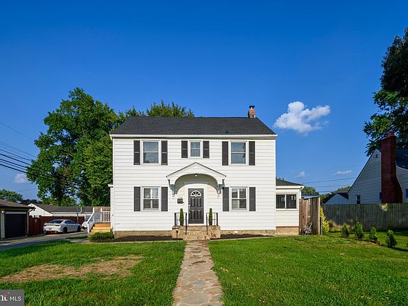 Rare find in Roland Terrace! Beautiful center entrance colonial on a large corner lot. The flagstone landing and portico beckons you inside to a traditional floor plan with plenty of rooms for everyone in the family! Living and dining rooms feature hardwood floors and plantation shutters. A main floor bedroom and stylish updated full bathroom is perfect for the multi-generational family or for use as an office. The kitchen is bright and white with granite counters and a sunny breakfast room. Retreat to your spacious primary bedroom at the end of the day with mood enhancing cove lighting and an adjacent sitting/dressing room with double closets/systems or for the new baby in the family to keep nearby at night. Two more spacious bedrooms and an updated full bathroom complete this floor plan. Brand new soft gray w/w carpet on the stairs to and throughout the second floor, as well as stairs down to the completely finished basement with not just one but two rooms and laundry area! Use your imagination.. kids play room/hangout.. a theater room.. and a craft room?! A large private fenced back yard with a stone patio and a grand shade tree is perfect for napping on a Sunday afternoon and family BBQ's on Saturday plus enough room for the kids and dog to play. A walkway leads to the back door of the huge 2 car detached garage with work bench plus space for bikes and tools. Plenty of parking around back or out front. This beauty is one to make your own; a keeper for years to come!