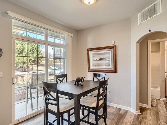 Beautiful ground level condo with the best location in First Creek could be yours! Walkin to an open concept living room, kitchen and dining area. The primary bedroom is a spacious master with walk-in closet, master bath, dual sinks, new counters, and a jetted tub. The master bedroom features a private covered patio with storage closet. This is in addition to the main patio that looks out to the green space for your pet to play, pool, and clubhouse! Bedrooms are separate and private. Enjoy the cozy gas fireplace all year round. The furnace and hot water heater are brand new along with the newly installed modern Pergo flooring making this unit even sleeker and cleaner. This condo includes a carport to shield your vehicle from Colorado weather. This well kept gated community includes a huge pool, hot tub, fitness center, and events clubhouse room available to residents by reservation. Don't miss your opportunity to own this centrally located home within close proximity to DIA; making it a great investment property or first home! Book your showings now as this won't last long!