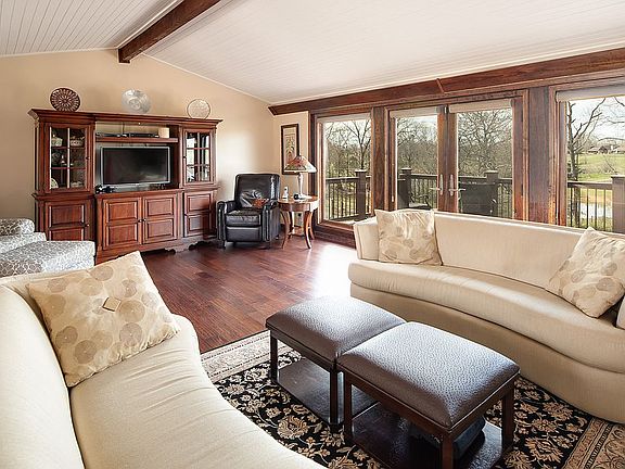 Beautiful home in peaceful country setting. Guest quarters in basement with full kitchen, dining area, living and media rooms.Two stone fireplaces. Cathedral ceilings. Large deck and screened patio.