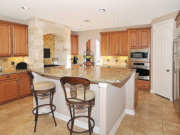 Immaculate Ashton Woods home on a cul-de-sac, greenbelt lot in Terra Vista! Elegant 2 story entry, extensive wood floors, wrought iron staircase, built-ins, neutral paint colors & many lovely finishes; spacious kitchen w/granite counters, cherry cabinets, stone arch, stainless appliances (built-in fridge) & breakfast bar opens to den & breakfast; formal dining; 2 master suites (1 up, 1 down); gameroom up; open study; Huge, beautifully landscaped yard w/covered patio, pergola & putting green!