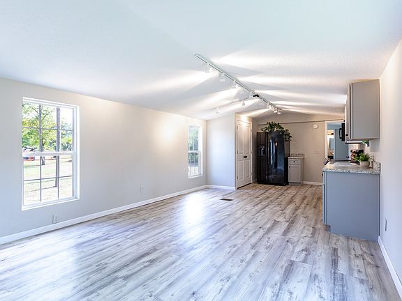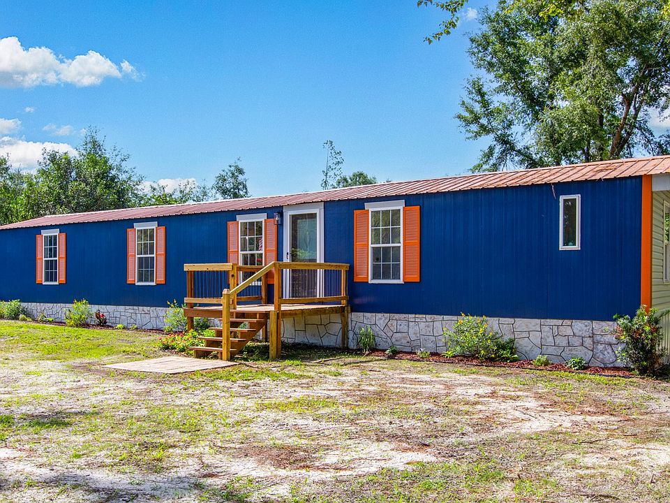 New from top to bottom! This 2 bedroom 2 bath singlewide mobile home on 1 acre features new drywall on walls and ceilings, new premium flooring, new soft close kitchen cabinets, new countertops/backsplash and double bowl sink. Fresh Sherwin Williams paint with all new interior doors throughout, track lighting in kitchen, dining and living room. Outside the home has been updated with new custom stone façade skirting, weather wrap vinyl siding, new double paned windows throughout, new front and back decks with custom railings, keyless entry front door, perennial landscaping with soaker hoses and rubber mulch, seeded lawn, freshly painted fence, and an 8x12 shed in the backyard with water hook-up. Located on a paved road with no flood zone and no restrictions. Come take a look!