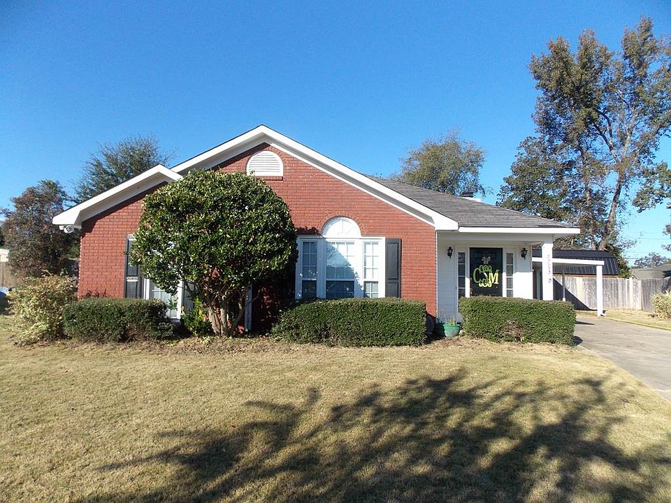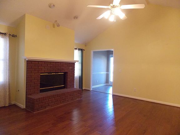 Open floor plan with great room, dining room, kitchen. 3 bedrooms and 2 bath. Master bath with 2 sink vanity, separate shower & garden tub. Hardwood floors in great room and all bedrooms. Ceramic tile in dining room & kitchen. Catherdral ceiling & firepalce in greatroom. Covered patio for great entertaining. 2 carport. Storage shed