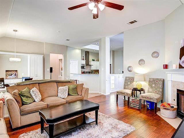 Beautifully updated home in highly desirable area close to everything. Granite in kitchen and bathrooms, updated cabinets, built-in bookshelves and gorgeous glass-fronted cabinetry. Hardwood floors in living, dining and front bedroom (optional office/2nd living). Upgraded light fixtures. Recently built huge deck in backyard for outdoor entertaining. Entire home has 90% solar blocking screens resulting in super low energy bills (have been removed for sale but are in garage)! Priced below TCAD appraisal!!