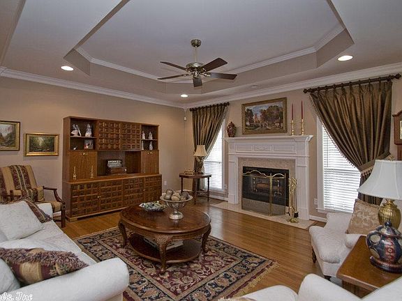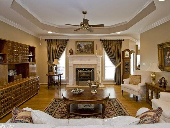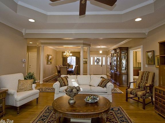Custom built 1 lev home w/wonderful features. Site finished hrdwds throughout. 2 FPLCs. Lrg living & dining. Kit has new granite, backsplash & lrg pantry. Hearth rm has 2 walls of windows & FRPLC. Lrg game rm & sep office. MBRM is lrg w/lovely bay window. MBA has new tile, 2 closets, 2 vanities, sep bath & shower. Both guest BRs have baths & walk in closets. Lndry has sink & is lrg enough for a refrig. New HVACs in 2010&2014, roof 2011, garage drs 2015. Sprink sys, sec sys. 10x17 3rd car gar w/storage above
