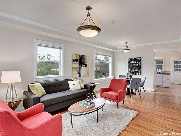 Lots of light in this two story Dutch Colonial style home in the John's Landing neighborhood. Two bedrooms up, each with its own bathroom and one down in the fully finished basement. Half bath on the main floor. Full of character with hardwood floors, wood-wrapped windows and crown molding.