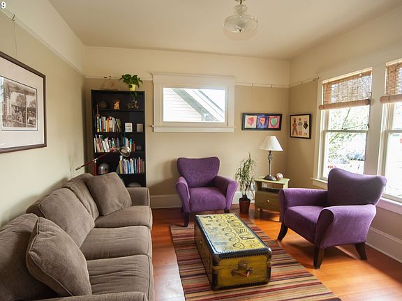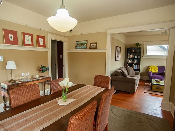 On a quiet dead-end street, this bungalow is a gem. High-ceiling bedroom on the second floor has plenty of space to add a bathroom. Classic craftsman millwork throughout the house. The basement has great potential with a small room suitable for a wine cellar. A wrap-around cedar porch in the back overlooks the lovely garden. Home Energy Score: 5.00 Nearby: Safeway, New Seasons, Grand Central Bakery, Woodstock Hardware. [Home Energy Score = 5. HES Report at https://rpt.greenbuildingregistry.com/hes/OR10015924]