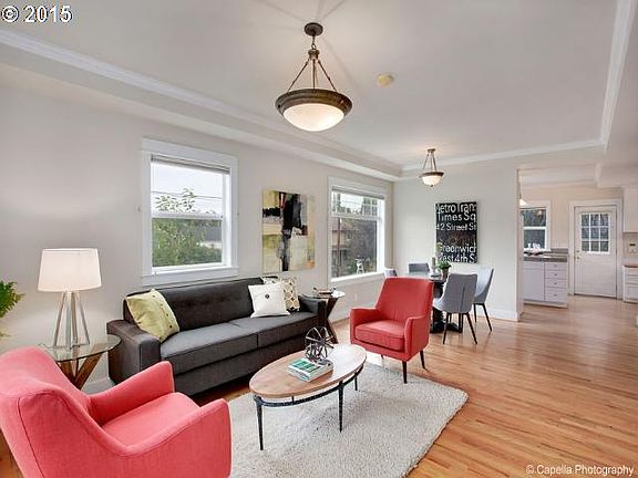 Located on a corner lot in popular John's Landing, this beautiful home is open and flooded with light. Large kitchen with center island and granite counters & breakfast nook with built-in storage. Two bedrooms up, each with its own bathroom and one down in the fully finished basement. Full of character with hardwood floors, wood-wrapped windows and crown molding. Large deck in a private backyard. All appliances included.