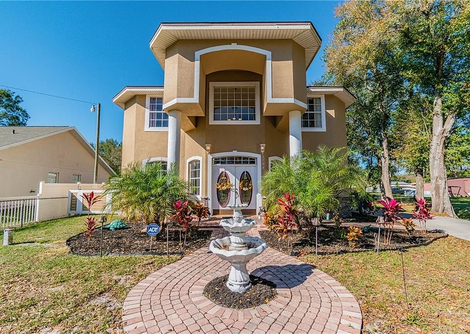 WOW! Grand 4 bed/3 bath home w/large rooms on a .6 acre lot with no HOA and all the upgrades on your list! It features a smart layout w/ wonderful flow & the perfect balance of separate spaces while still feeling open & interactive. Large rooms throughout & high ceilings on the 1st floor. The 2 story foyer is flooded w light. The formal dining has wood floors, tray ceilings, & recessed lighting. The great room has built in shelving & flows into the sun room. The large kitchen has premium wood cabinets, stainless appliances, solid surfaces counter tops, a breakfast area, pantry, & quick quick access to the laundry room & garage. BR4 and a full bath are also on the 1st floor which is perfect for multi generational living. Off the sun room is a recently added screen in lanai to enjoy the outdoors. Upstairs you will find the master suite suite which can accommodate a large furniture & has double walk in closets. The master bath offers dual segregated vanities, garden tub, walk in shower and private commode. BR 2 has french doors & en suite access to bath 2. Its could also be used as an office or tv room. BR3 offers quick access to bath 2 using the hallway door. The exterior has a detached 2 car garage with double garage doors. The large back yard offers lots of space for sports or pets to play. SEE TOUR 1 for VIDEO & TOUR 2 FOR 3D MATTERHORN WALK THROUGH. The homeowner recently upgraded the septic pump to allow for relocation of the drain field to the rear yard to add a pool. This is a true custom home!