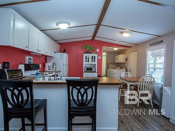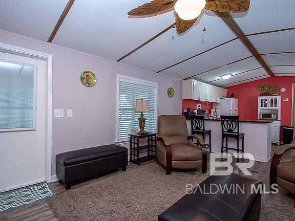 Here is your Orange Beach get away for under $300! Located in popular Bear Point subdivision this well maintained and nicely updated mobile home is set up like your own private oasis! Situated just steps to the water, you can walk to the end of your drive and see Arnica Bay! The home has a large covered carport, and nice screened deck with lifetime composite decking for starters. Inside you will quickly notice the vaulted type ceilings, newly updated LVP wood look flooring in the common areas, and updated bathroom tub/shower inserts. The HVAC has been replaced within the last few years. Storage is not a problem with the large storage shed. There is also a lean to behind the home for your golf cart, mower, or other toys. After returning from the private Bear Point beach, you can shower the sand off in the outdoor shower! The beach is only one of the many amenities offered to Bear Point Civic Association members. The neighborhood does not have an HOA, but residents can voluntarily pay $100 or $350 / year to join and take advantage of the beach, kayak launches, swimming pier, fishing pier, gated private boat launch and park! If you have been looking for at least 3 bedrooms in Orange Beach that won't break the bank this may be just the property! Partially Furnished, as you see it. Ready for you and your family/friends to have that place at the beach just bring your toothbrush and suit!