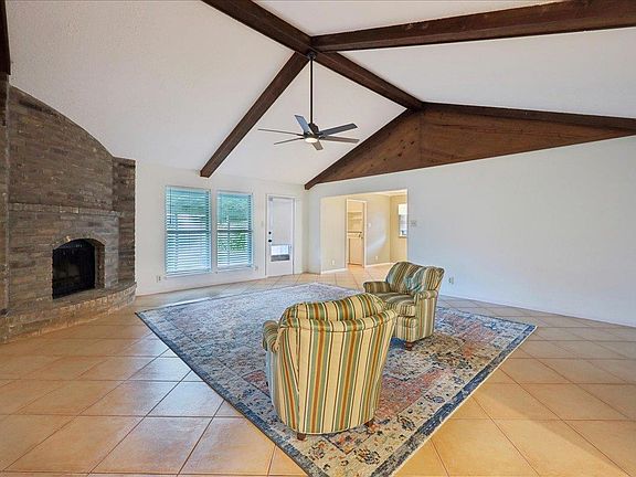 Charming 3-Bedroom, 2-Bath home features an updated kitchen complete with granite countertops, custom cabinetry, and stainless steel appliances. The spacious living area boasts vaulted ceilings and a cozy wood-burning fireplace, perfect for gatherings. Beautifully crafted terracotta tile flows throughout the main living spaces, while the bedrooms offer the warmth of vinyl plank flooring. Step outside to enjoy peaceful evenings on the covered patio overlooking the landscaped backyard.