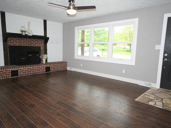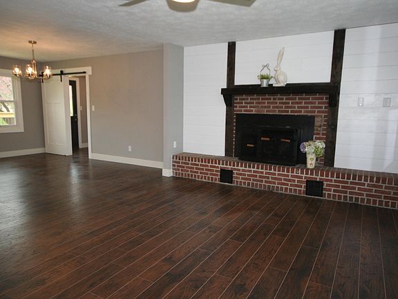 Great opportunity for an updated ranch home on an acre lot just off Hwy 65... so easy access! SO much new! All new laminate wood and tile floors throughout! Opened up floor plan offers living room with the FP (wood burning insert) and accent wall open dining and a brand new everything kitchen! New cabinets, stainless appliances, granite counters and more! All new light fixtures, smart gray walls with crisp white new trim, new doors, new commodes, new deck, new gutters on order. Located at the end of the street with lots bordered by trees. Covered front porch with stained beams. So cute and such a treat! Move in ready with nothing to do!