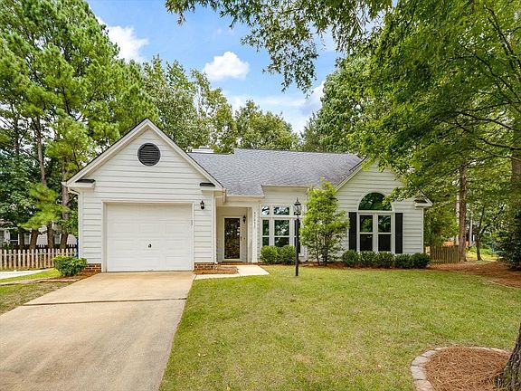 PICTURESQUE Home on Quiet Cul-de-sac in Popular Harrington Grove! Bright & Open Floor Plan! NEW Windows! Fresh Paint! Luxury Vinyl Plank Floors on Main Level! LR w/Wood Burning Fireplace (Never Used), Ceiling Fan & Vaulted Ceiling! Kitchen w/Granite Counters, White Cabinets, SS Apps, Tile Floors & Pantry! FIRST FLOOR MABR w/Cathedral Ceiling & Fan! MABA w/Tile Floors, Whirlpool Tub, Double Vanities, Walk-in Shower & Spacious WIC! First Floor Laundry Room! Two Guest BR's Upstairs w/Large Closets! Oversized One-Car Garage! Extended Patio! Big Fenced Backyard w/Fire Pit! Neighborhood Walking Trails & Playground! Community Pool & Tennis for Fee! Top School District! Minutes to RDU & RTP!