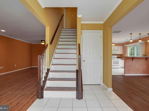 Oakmont Townhouse at Essex Place in Mount Laurel. Fantastic location with Patio facing common grounds! 3 Bedrooms, 2 and a half baths with upstairs laundry and storage room on main level. Hardwood laminate throughout, Kitchen features tile flooring, Corian counters, tile backsplash, Island separating Kitchen from Dining Rm which has cabinetry and a breakfast bar. The Formal Living Rm and Dining Rm wall was taken down to make a large Living Rm and sellers use the Family Rm as Dining Rm - makes this Oakmont model so much more spacious and convenient! Newer water heater and washer too! The home has crown molding throughout, chair rail in the bedrooms, ceiling fans in all bedrooms, and carved out shelving in the staircase! Primary Bedroom has two closets - one walk in and one wall closet with full ensuite bathroom featuring a soaking tub. Come fall in love and make an offer today!
