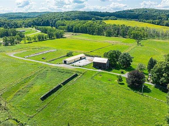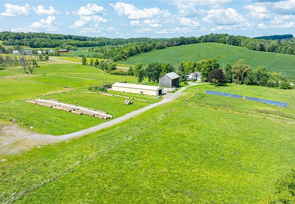 Prime location just outside the charming Hamlet of Cheshire where you can experience country living at it's finest, yet just minutes to all Canandaigua has to offer. Currently two bedrooms downstairs and a true in-law apartment/suite with two additional bedrooms that could easily be converted to a single family four bedroom home. Two barns ~ Older wooden barn and a 30' x 120' Metal barn ~ recently a working cow farm, great for any animals and plenty of storage including hay. 6+ acres of fenced in pasture. Solar panels to offset utilities. Minutes to Bristol Mountain and Canandaigua Lake.