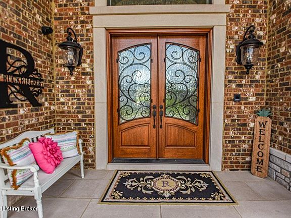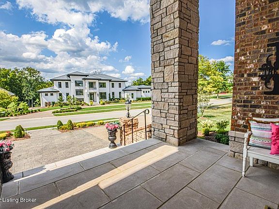 Welcome to this stunning custom built gem situated in one of Louisville's most exclusive neighborhoods, Harrods Glen. This home features the finest finishes one can imagine with over 13,000 feet of living space! In a class of its own, this spectacular home features master crafted millwork and inlays, grand arch doorways, and elaborate ceiling details. Quality and craftsmanship can be found throughout this custom-built home including an impressive backyard with in-ground gunite saltwater pool with waterfall and hot tub, putting greens, and an outstanding full-size sport court (44'x57') which boasts three Goalrilla Goals, tennis, volleyball, and pickle ball courts. Expansive entertaining areas and storage galore. Past the circular driveway you will be welcomed to a vast entry foyer with a wonderful view! Magnificent woodworking, coffered ceilings, and open floor plan is ideal for entertaining. The elegant formal dining room has wainscoting and tray ceilings with shadow box lighting accompanied by a Butler's pantry. Multi-tiered woodwork welcomes you into the luxurious kitchen, second to none. Boasting double layered granite countertops, off-white cabinetry and a deluxe breakfast bar with an abundance of counter space and seating. The built-in fireplace in kitchen cabinetry is an inviting site for your friends and family. Multiple ovens, custom double fridge, ice machine and beverage cooler are a chef's dream. The open flow from the kitchen area will lead you to a hearth room with a floor to ceiling creek-stone fireplace, vaulted ceilings, and another family room featuring coffered ceilings and matching creek-stone fireplace joined by the open staircase leading to an amazing lower level.