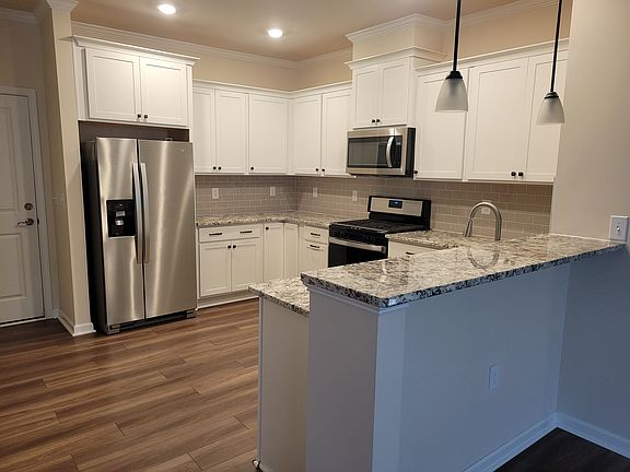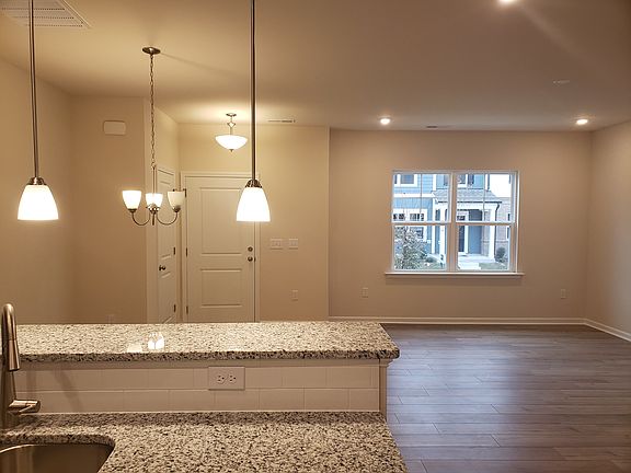 This Townhome features an open great room and dining which leads into the kitchen equipped with upgraded cabinets and granite counter tops, stainless gas appliances and a pantry for overflow. The staircase leads up to The owner's suite which features an enormous walk-in closet. The owners bath features a tiled shower with glass door, double vanities with granite countertops and linen storage. The garage is a two-car rear load. All base school assignments are Wake County Schools. The new Garner Costco, is across the street. The 540 Extension less than 1.5 miles away near the Wake Tech Campus.